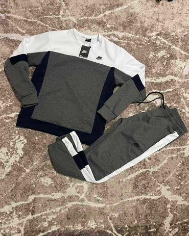 Nike komplet trenerke – bela - Dvodijelni set: dukserica s kapuljačom + donji deo trenerke - Boja: bela sa crnim Nike logotipom (Swoosh) na oba komada - Materijal: mekana pamučna/fleec unutrašnjos...1 350 RSD