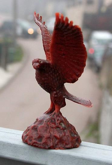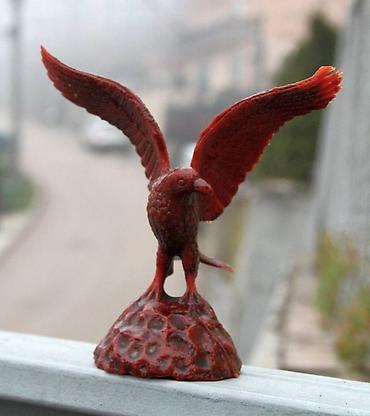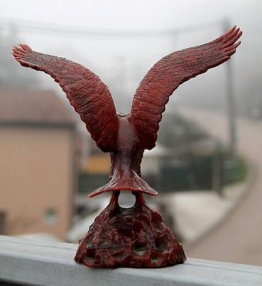 Dekorativni *lovački ukras sa prikazom orla, predstavljenog u trenutku neposredno pre poletanja. Motiv orla je tradicionalno vezan za lovačku simboliku i enterijere lovačkih soba, planinskih kuća i vikendica, naročito tokom 1960-ih i 1970-ih godina.