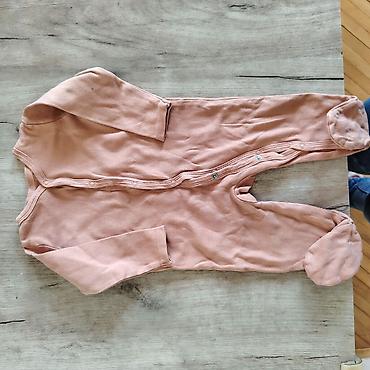 Paketić odeće za bebe – bodiji i pidžamice sa stopicama 62/68 - Dva dugačka bodija na preklop, svetloružičasti, sa dugmićima na ramenu i drukerima između nogica; jedan model sa malim vezom mišića ...