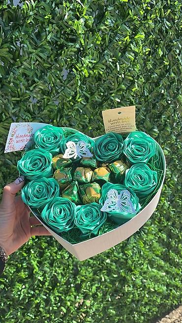 Poklon aranžman u kutiji u obliku srca – ručno rađen - Elegantna