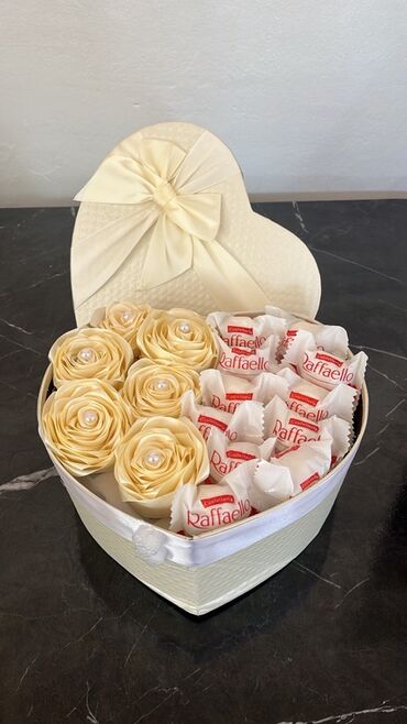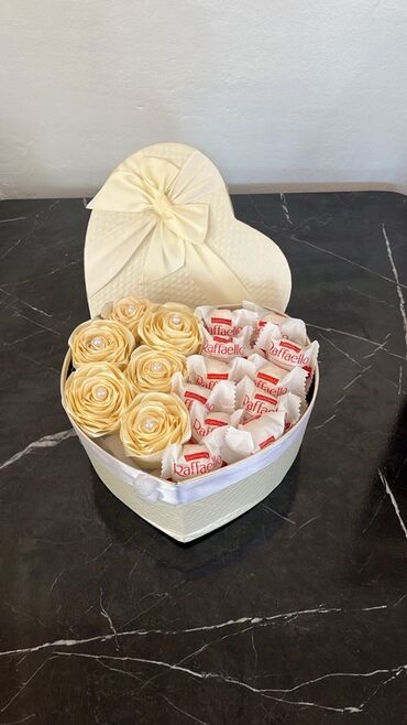 Poklon set u elegantnoj srebrnoj kutiji sa mašnom “LOVE IS ETERNAL”.Unutra se nalazi aranžman od svetloljubičastih ruža (veštačke, pažljivo oblikovane latice) kombinovanih sa čokoladnim kuglama u z...