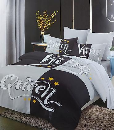 BRACNE POSTELJINE – komplet 5D dezen Opis: - Komplet posteljine sa modernim 5D dezenima: zvezde u crno-beloj kombinaciji, srcoliki motivi u više boja na svetloj podlozi, elegantni tamni set sa bel...