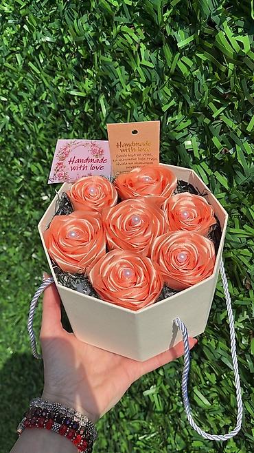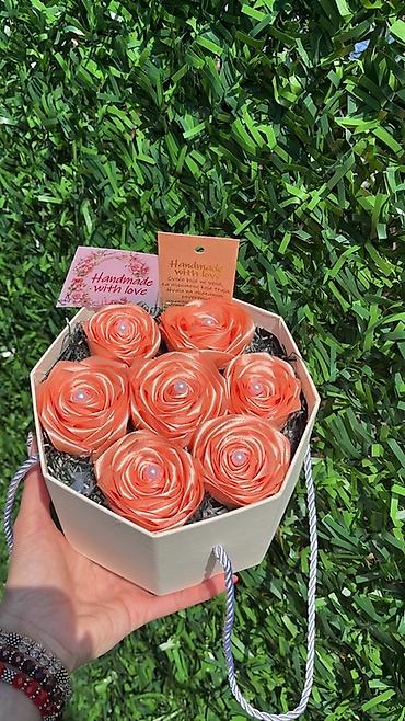 Ručni buket od satenskih ruža u kutiji