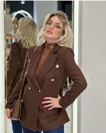 Ženska odeća – više komada 1) Kratki blejzer od tvida - Boja: crna sa belim kariranim uzorkom - Klasična kragna, podstava - Četiri prednja džepa sa preklopom - Veličina: XL - Cena: 999 2) Elegant...6 000 RSD