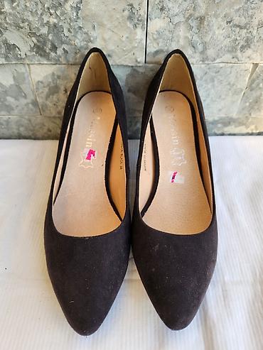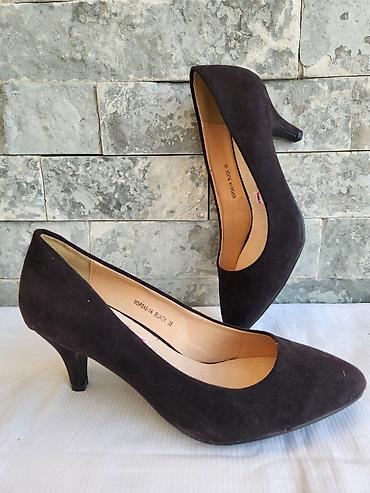 Ženske salonke sa visokom štiklom i špicastim vrhom. Gornji deo je u