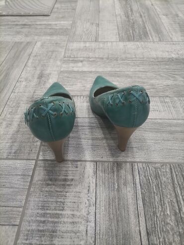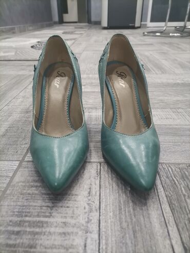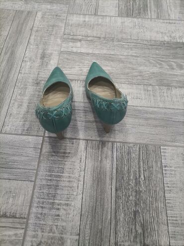 Maslinasto zelenaSalonke su kao nove, nema nikakvih oštećenja, broj 36, unutrašnje gazište 23cm, dužina štikle 9cm, moguće slanje cc pošiljkom jeftinija poštarina
