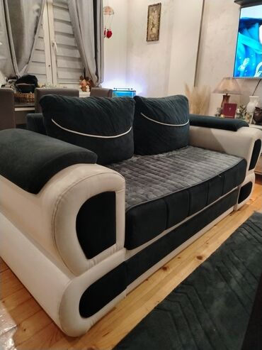 Trosed/klik-klak kauč na razvlačenje - Model: ravne linije sa blago zaobljenim naslonima - Mehanizam: klik‑klak preklop (pretvara se iz sofe u ležaj) - Presvlaka: svetloplava tkanina, mekana na do...349 EUR