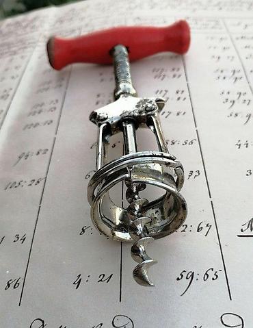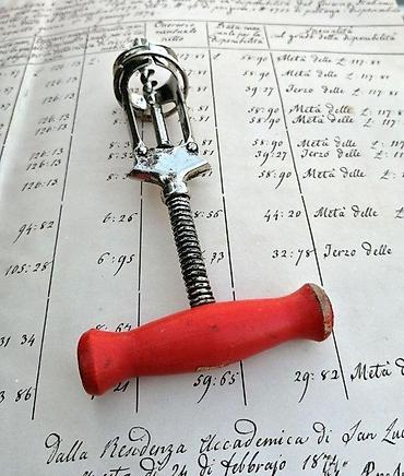 Stari vadičep/otvarač za flaše, drvo, čelik 1920.. Stari vadičep / otvarač za flaše sa otvorenim kućištem, Drvo, čelik. Mid Centtury ( prema najpoznatijem globalnom aukcijskom sajtu oko 1920, cena 120$). Ispracvan, u radnom stanju. Tire-Bouchon À SystÈ me Dit ColuumbusDužina 18,5 cm. Širina 13,5 cm 8 Raširen/ otvoren). Inače dobro korišćeno stanje, znaci habanja u skladno sa godinama (pogledajte fotografije). FOTOGRAFIJE SU DEO OPISA, Kp 67 ✨