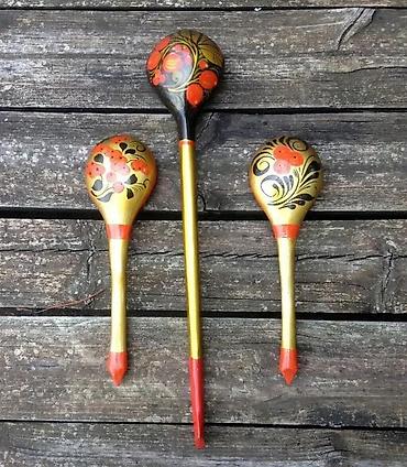 TRI ručno slikane DRVENE kašike do 35 cm. Tri velike (poledajte metar na prvoj fotografiji) DRVENE, ručno slikane kašike. Kupljene 1982. godine. Cena za sve tri! Prodaju se upravo predmeti koji su fotografisani - poštanski troškovi nisu uračunati u cenu. Kz19 7079 ✨