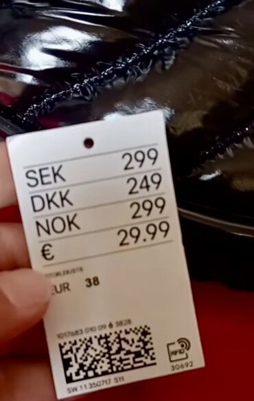 Napomena: na etiketi je naznačeno da su gornjište, postava i đon od sintetičkih materijala; đon sa ikonicama za negu i upotrebu.