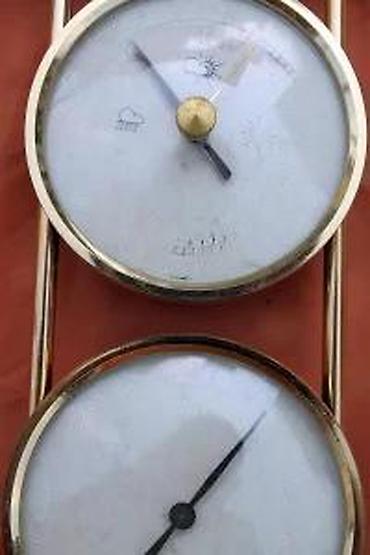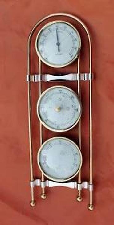 Vintage Analogna meterološka stanica od mesinga. Proizvedeno u Nemačkoj Dekorativna metereološka stanica od mesinga Sa izloženim pokretom baromwetra Meri vazdušnu temperature, pritisak i vlažnost Precizan Domatic barometer za vremensku prognozu Okvir od čvrstog mesinga – poliran Sa otvorenim pokretom barometra Dimenzije cca: 101 x 34 x 325 mm Na staklu higrometra postoji izvesno naprsnuće koje ne utiče na funkcionalnost, a pošto nije odviše vidljivo niti značajno na estetiku. Svejedno – zbog toga je cena izuzetno smanjena. Pogledajte fotografije, one su vitalni deo opisa, progaje se upravo fotografisani predmet. Hvala na poseti. KP94 1111 ✨