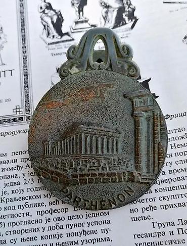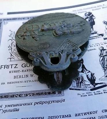Vintage bronzani grčki držač štipaljka. Vintage Bronze Greek God ornate Clip / Clamp, Paper / Mail / Letter Holder. Svaka strana je ukrašena. Patina i starenje na površini. Signirano sa unutrašnje strane. 8,5 x 6,5 cm. Težina cca 100 grama. Pogodno za kolekcionare, ali ima upotrebu na stolu kao uteg za papir ili za kačenje. Hbvala na poseti. KP79z ✨
