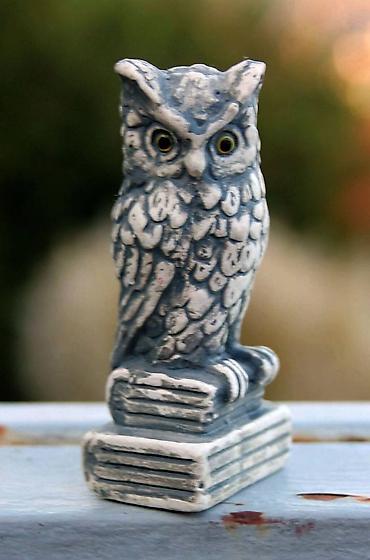 Vintage figurina - sova na knjigama znanja.