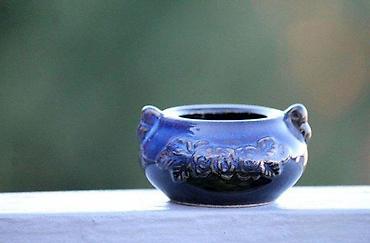 Vintage Kavijar server Kobalt Plavi. Vintage Kobalt Plavi Kavijar server sa reljefom i glazurom. Dimenzije cca: visina 3,8. prečnik 6,8 cm. Bez oštećenja. Na fotografijama se ponegde vidi odbljesak svetla. Pogledajte fotografije , one su vitalni deo opisa, prodaje se upravo fotografisani predmet. KP67 7348 ✨