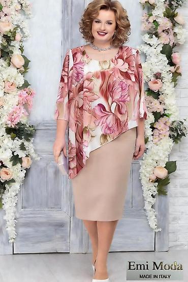 Elegantna ženska haljina sa asimetričnim šifonskim gornjim delom – Emi Moda, Made in Italy.