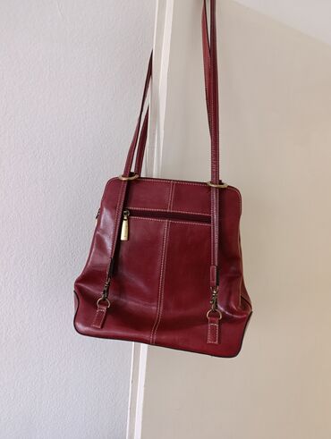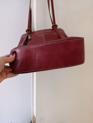 - Materijal: prirodna koža, glatke teksture, bordo/crvena nijansa