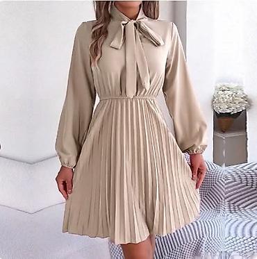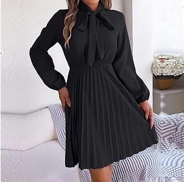 Ženska plisirana haljina s mašnom
