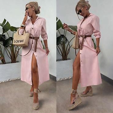Košulja-haljina sa prugama, midi dužine Univerzalna veličina - Kroj