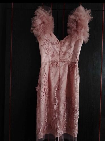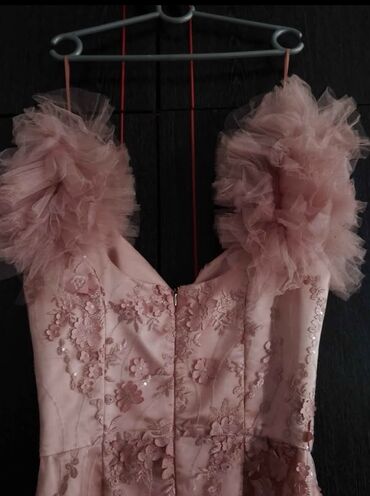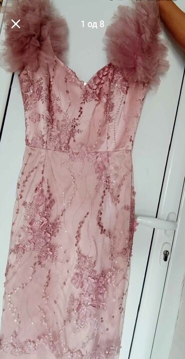 - Detalji: providan til preko ruba, ukrasni reljefni cvetovi raspoređeni duž cele haljine.