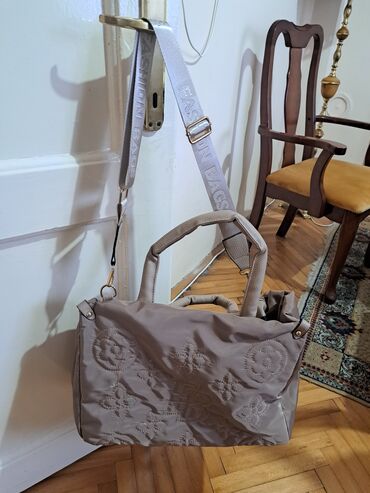 - Nošenje: dve udobne ručke za nošenje u ruci + širok podesivi i otkopčiv kaiš za rame/krosover (na kaišu utisnut natpis „FASHION BAGS“).