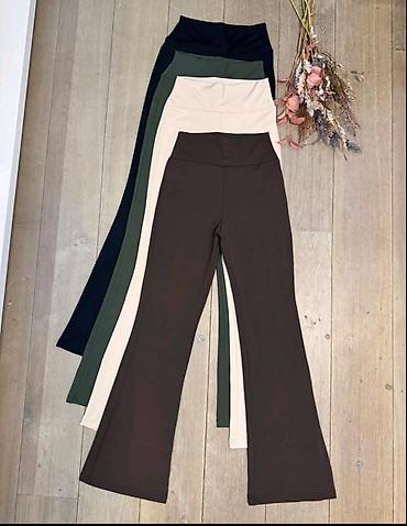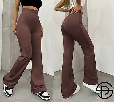 - Kroj: uske kroz butine, blago se šire ka dnu (flare) za izdužen efekat nogu