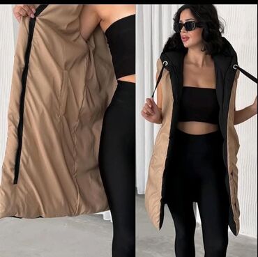 Duga ženska prsluk-jakna bez rukava, brenda Orcelly Fashion, veličina S. Model u crnoj boji, quilted/štepovan, sa kapuljačom i crnim učkurima sa metalnim završecima. Spoljašnji materijal izgleda ka...899 RSD