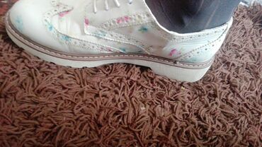 Dameće cipele sa pertlama – broj 38, dva unikatna modela. Model 1: - Šarene oksford/derbi cipele sa nižom blok petom. - Patchwork print u plavo‑zelenim i zemljanim tonovima, sa dekorativnim šarama...+381 61 25671xx