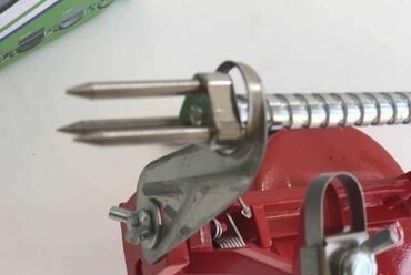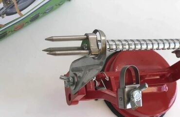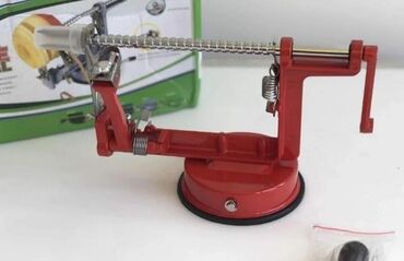 Postavite jabuku na metalni deo sa tri šiljka i počnite da okrećete ručku, dovoljno je da par puta okrenete ručku i jabuka je oljuštena!