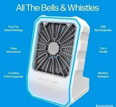 Arctic Air spoljni evaporativni vazdušni hladnjak ima (3) lopatice velike brzine od 8 inča dizajnirane da guraju velike količine vazduha kroz (2) rashladne mlaznice velikog kapaciteta, pretvarajući svaki spoljašnji prostor u hladnu oazu! Podesivo hlađenje, kako želite!