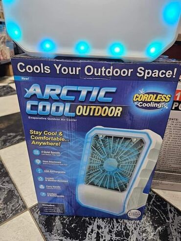 Jednostavno napunite rezervoar za vodu, postavite hladnjak u svom pravcu i uključite ga. Savršeno za upotrebu kao ventilator za kampovanje ili lični ventilator za plažu, terasu, palubu, pored bazena, dvorište i još mnogo toga! Vaš idealni saputnik na otvorenom - Ovaj arktički rashladni uređaj ima 7 LED lampica za raspoloženje i opciono povezivanje baštenskog creva za neprekidan protok vode.