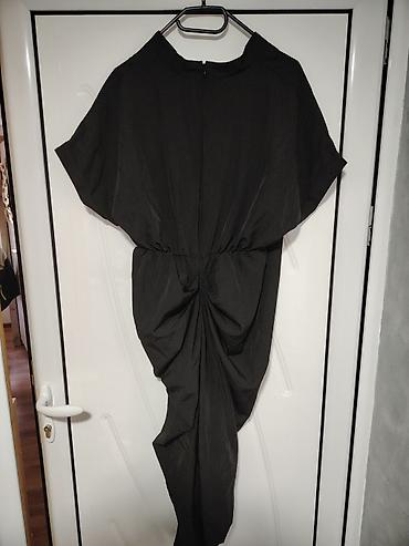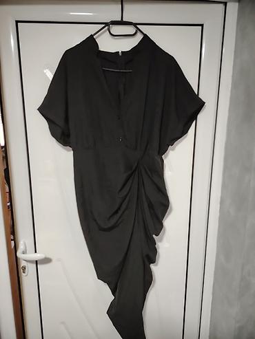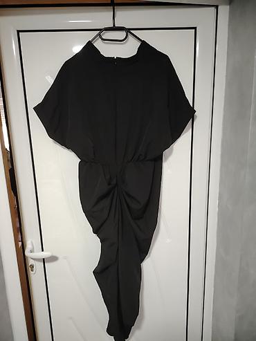 Crna asimetrična haljina sa drapiranim čvorom
