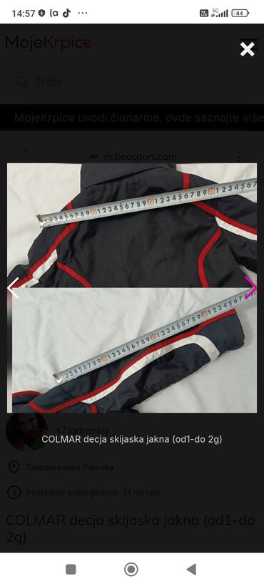 - Orijentacione mere prikazane na fotografijama (rukav i širina leđa mereni metrom)