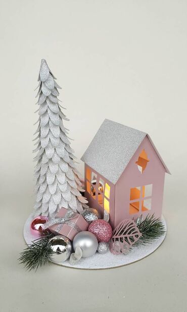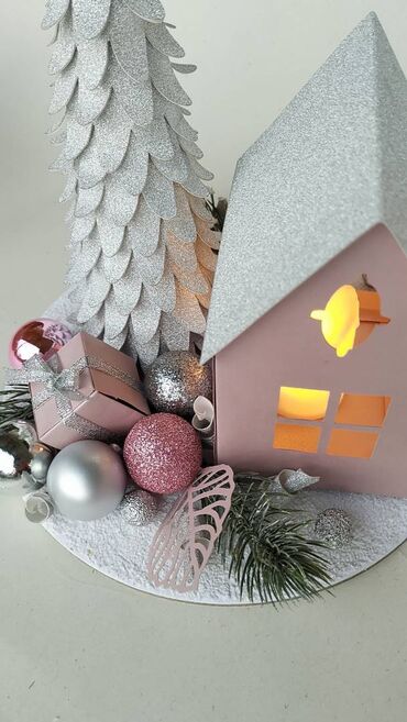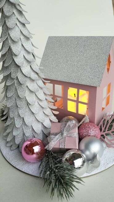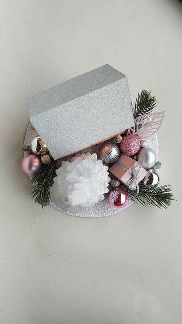 O trošku kupcaPokupiti na licu mestaDekorativna novogodišnja ikebana, ručni rad. Prečnika 20 cm, visina 22 cm.
