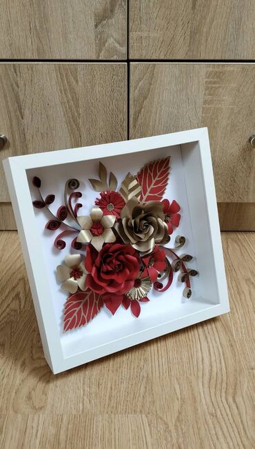ŠarenoDekorativni ram sa cvetovima od papira. Ručni rad. Preko stakla je moguće odraditi natpis. Veličina rama 25 x 25 cm, 5 cm dubine.