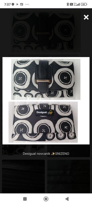 SNIZENO!Desigual ženski novčanik sa prepoznatljivim crno‑belim grafičkim printom kružnica. Prednja preklopna klapna sa remenom od eko‑kože i metalnom kopčom, zadnja strana sa izvezenim Desigual logom. Unutrašnjost organizovana u više pregrada: prostor za novčanice, odeljci za kartice i dokumenta, kao i dodatni džep. Kompaktan, ali praktičan format, izdržljiv spoljašnji materijal i kvalitetna završna obrada tipična za Desigual. Savršen detalj koji lako ide i uz svakodnevne kombinacije...Desigual novcanik ukrasen kruznim motivima,sa nekoliko pregrada za kartice ili dokumenta,pregradu za sitan novac .. Dim.sklopljenog 19x12cm.. dim .rasklopljenog novcanika 33cm. bez nedostataka.