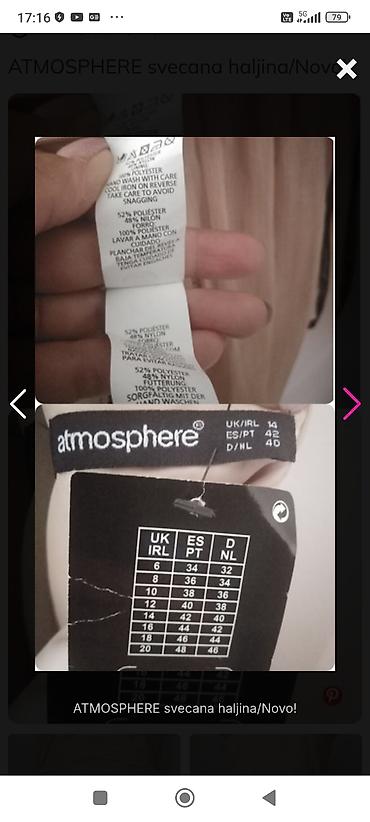 RASPRODAJA!!!Snizeno! Atmosphere haljina, novo sa etiketom. Naznacena vel.EU.40. .. Odgovara nasem br.38.... Slikane su tabele. Pogledajte ostale moje oglase.