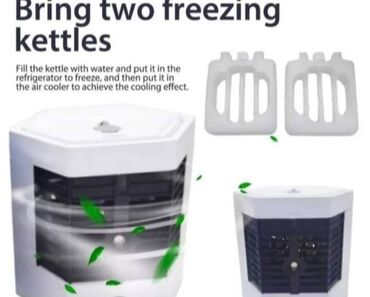 Ovaj inovativni klima-uredjaj koji se napaja putem USB kablića, osvežiće Vašu sobu, vikendicu, kamp kućicu. . . Razlika od ostalih portabl klima na tržištu je što ovaj proizvod ne radi samo na dopunu vode, već ima i dva rezervoara koje držite u zamrzivaču, pa ih tako zamrznute stavljate u uredjaj. Dobijate ih dva komada u pakovanju, tako da ne morate razmišljati o medjuperiodu bez hladjenja. Samo zamenite rezervoar i uživanje se nastavlja. Ovaj uredjaj osvežava i oplemenjuje vazduh, tako da će sve odisati svežinom.