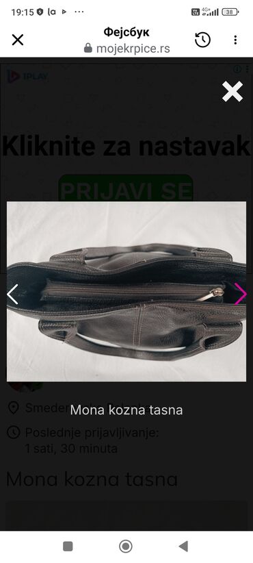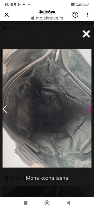 - Unutrašnjost: centralni prostrani deo sa dodatnim džepom na rajsferšlus (vidljivo na fotografiji)