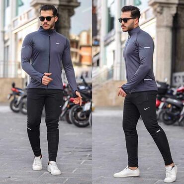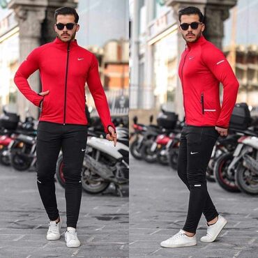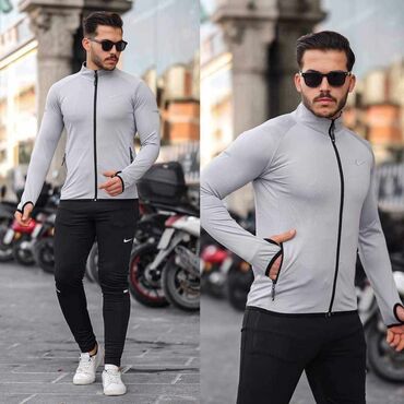 Muški komplet trenerke sa kapuljačom – Nike Air - Dvodijelni set: gornji deo (duks s kapuljačom i učkurom) + donji deo (donji deo sa lastišem i učkurom) - Veliki Nike Air logo napred; natpis “NIKE...