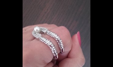 Nakit - prsten. Posrebreni prsten sa cirkonima i sintetičkim biserom