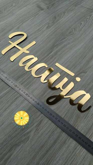 OfflineNatpis od kartona u zlatnoj boji sa efektom ogledala, 42cm širine. Upotrebljen jednom i u odličnom je stanju.