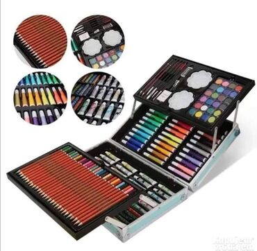 Predstavaljamo vam set za crtanje za sve klince i klinceze. Budući umetnici dajte svojoj mašti na volju i još danas krenite da stvarate vaša umetnička dela. Potpuno netoksični i antialergijski flomasteri, bojice i olovke smešteni su u aluminijumsko kućište modernog i atraktivnog dizajna koje će oduševiti vaše mališane. Kada otvorite magični koferčić u njemu se nalazi 145 artikala: flomastera, bojica, olovki u boji, običnih olovki, seta sa senkama u boji. i sl. a tu je i gumica ako nešto pogrešite kao i rezač za olovke. Jednostavan za sklapanje i rasklapanje, lak za nošenje, možete uživati u njemu gde god želite. U vrtiću, u školici, kod kuće, sa prijateljima, na izletima ili putovanjima.