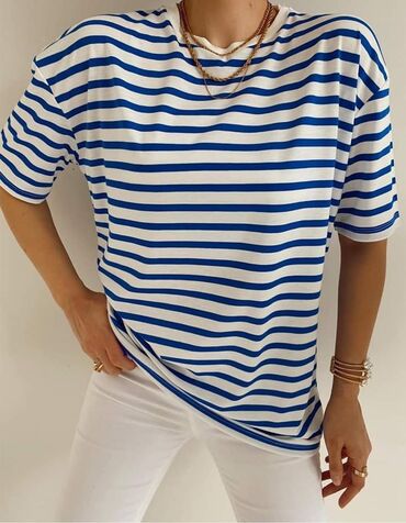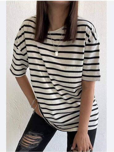 Ženska majica na pruge - Model: kratki rukavi, klasičan okrugli izrez - Dizajn: crno-bele vertikalne pruge; pruge na okovratniku blago kose za kontrast - Materijal: lagana, talasasta tkanina prija...100 RSD
