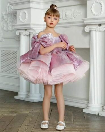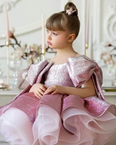 Svecana haljinica za devojcice,za 7 godina. Ima i snalu za kosu. Pozadi duza,napred kraca,ima postavu.