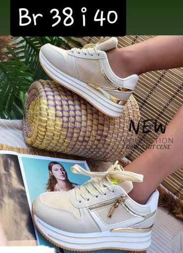 Bele ženske patike sa platformom. Detalji u boji zlata daju im moderan izgled. Idealne su za svakodnevno nošenje i lako se kombinuju uz različite odevne kombinacije.