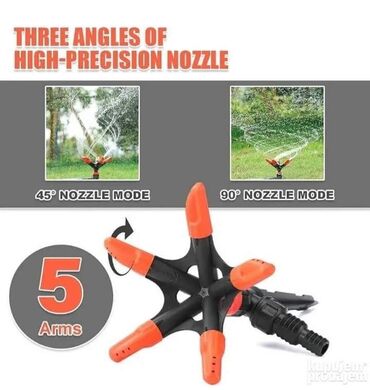 Prskalica za travnjak je opremljena sa 5 podesivih okretnih krakova i 15 ugrađenih mlaznica s različitim uglovima. Napravljena je od visokokvalitetne ABS plastike, otporna na hladnoću i sunce, funkcija protiv curenja, osigurava čvrstu i stalnu upotrebu. koji će omogućiti stabilne performanse, u potpunosti iskoristiti vodni resurs za postizanje najefikasnijeg efekta navodnjavanja. Mlaznica sa pet krakova takođe može podesiti ugao prskanja na direktan ili 45 stepeni za različite potrebe.