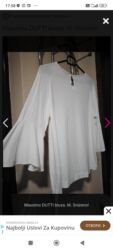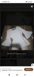 Bluzica: 2500din Elegantna ženska bluza sa dugim rukavima i zvonastim manžetnama. Model ima kvadratni/dekolte u obliku srca sa blagim naborima i ukrasnom kopčom u sredini, blago strukiran kroj koj...