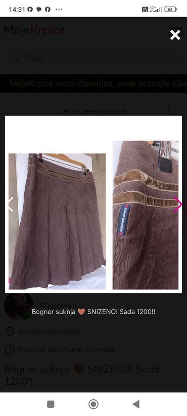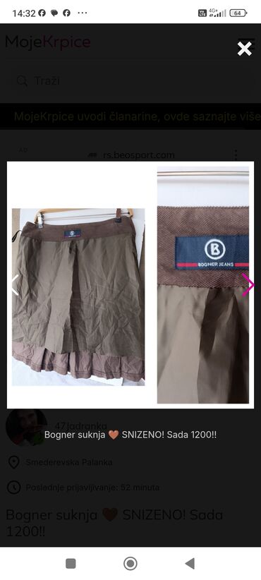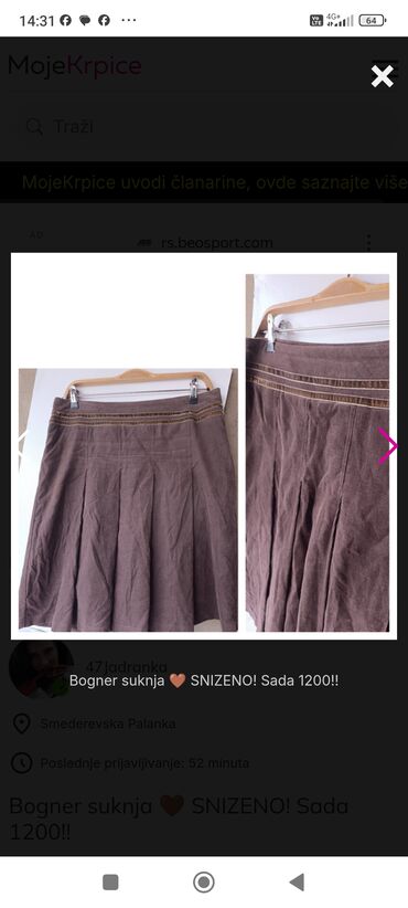 SomotRASPRODAJA!!! ORIGINAL Bogner suknja,vel.38. Poluobim struka 42cm,duzina 60cm .. kao nova