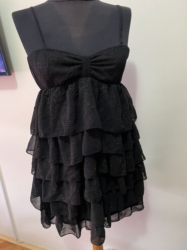 Zara haljina M vel Obucena jednom Crna sa sitnim zlatnim sljokicama