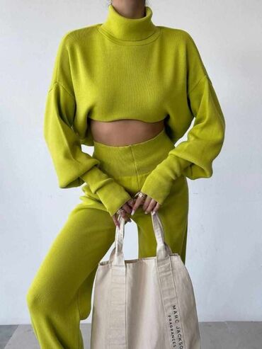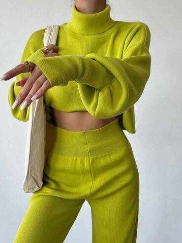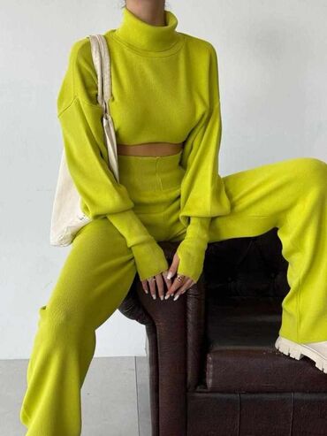 Ženski dvoslojni komplet – rebrasti dzemper i pantalone Univerzalne velicine - Materijal: elastični rebrasti pletena trikotaza, prijatan i mekan na dodir - Gornji deo: uski kroj, visoka kragna, as...